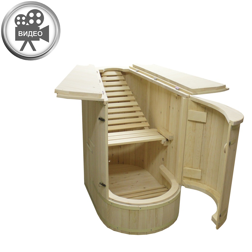 Фитобочка Полулежачая со скосом изготовлена из массива Сибирского кедра. Предназначена для универсального использования, как профессионального в SPА-салонах так и домашнего. Модель бочки одна из самых удобных и оптимальных. При сборке используется выбранный кедр 0-1 сорта. Замок сборки ламелей шип-паз, он практично себя показал за долгие годы эксплуатации бочек в разных условиях. Порог занижен до 30см, что позволяет без труда заходить в бочку.