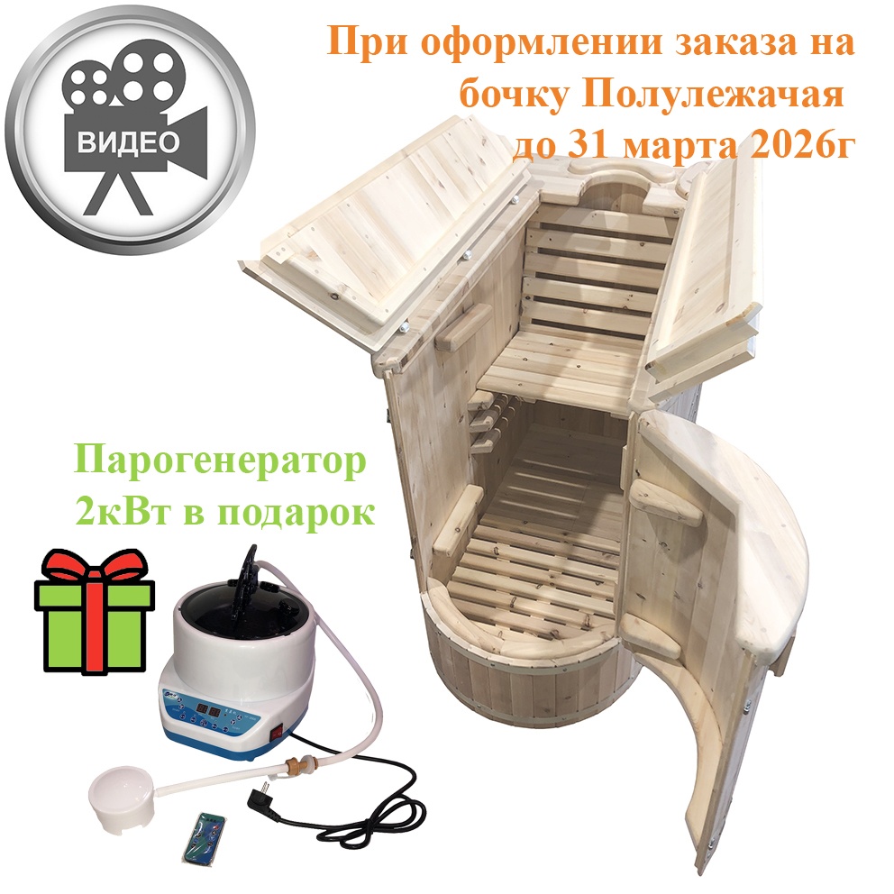 Комплектация: Подспинник Подшейник Подлокотники ТрапРазмеры бочки рассчитаны вмещать людей роста до 200см, весом до 150кг.
